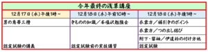 そのうち、広島と福岡の講座は、12月10日(水)から12日(木)までの3日間で、6講座を開催いたします。