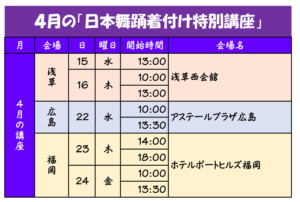 「きつけ塾いちき」主催の、「日本舞踊着付け特別講座」が今月も行われます。