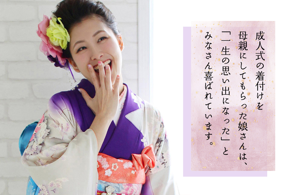 また、成人式には多数の着付け会場に派遣。腕を磨くチャンスもあります。
