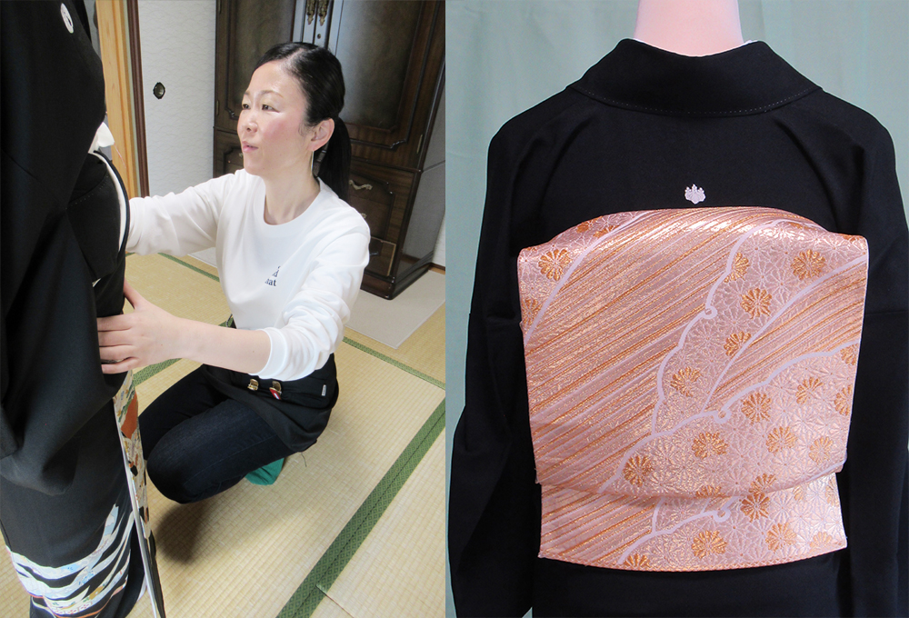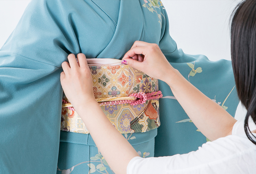 結婚式の参列する場合などに必要になる、留袖・訪問着・附下げなど、様々な礼装の着せ付けを学ぶ専科です。